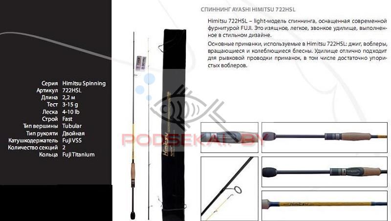 Характеристики спиннинга Ayashi Himitsu 722HSL 2,2м. 3-15 гр.: