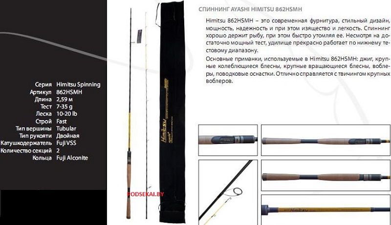 Характеристики спиннинга Ayashi Himitsu 862НSMH 2,6м. 7-35 гр.: