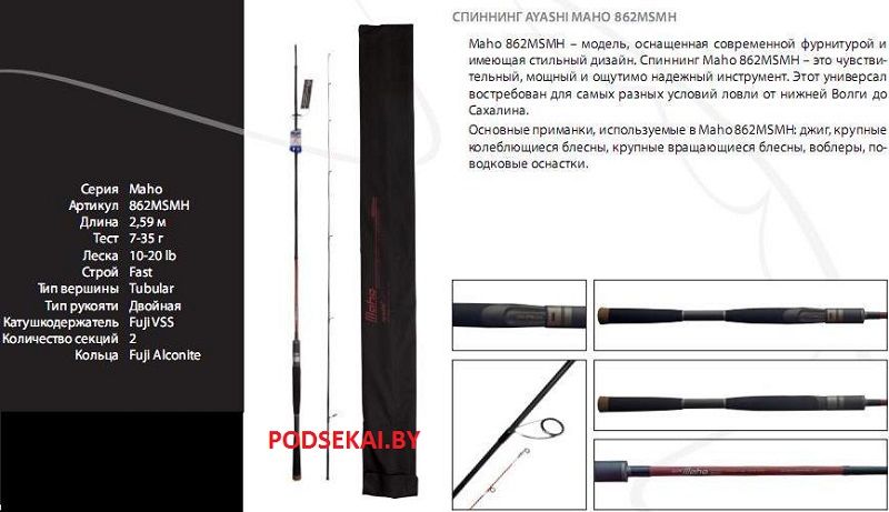 Характеристики спиннинга Ayashi Maho 862MSMH 2,6м. 7-35 гр.: