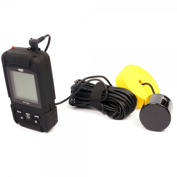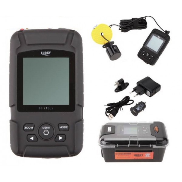 Эхолот LUCKY FF718Li-Т NEW - портативный и недорогой эхолот. Прост в эксплуатации. Корпус выполнен из пластика с прорезиненным покрытием "софт тач" и устойчив к проникновению воды. Меню полностью на русском языке. Большой дисплей с подсветкой имеет разрешение 128 х 64 мм и шкалу градаций серого. На дисплее отображаеться рельеф дна и пиктограмки обнаруженной рыбы.