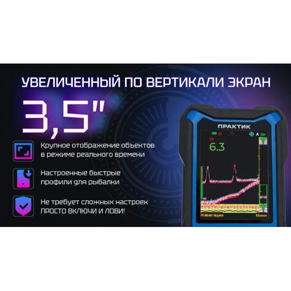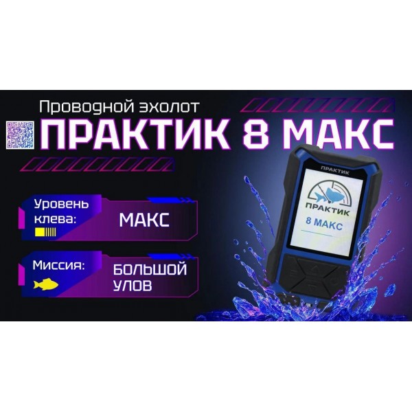 Эхолот ПРАКТИК 8 Макс - модернизированная версия эхолота с увеличенным дисплеем для детального исследования водной толщи. Прибор предназначен для обнаружения перспективных мест ловли, поиска рыбы и наблюдения за поведением приманки. Разработан с учетом особенностей российских водоемов и климатических условий.