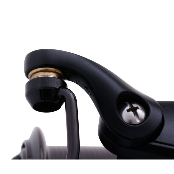 Благодаря этому при сверхдальних забросах диаметр намотки уменьшается незначительно, а это значит, что леска не испытывает повышенного трения о выступающий буртик шпули, как это происходит при использовании обычных катушек. Повышению дальности заброса также способствует коническая поверхность шпули. Идеально ровную укладку лески обеспечивает бесконечный винт. Корпус и ротор изготовлены из прочного пластика, ротор имеет превосходную динамическую балансировку. Под шпулей расположено специальное кольцо на четырех опорах, цилиндрические выступы которого входят в пазы, расположенные на внутренней поверхности ротора. Благодаря этому леска не может попасть под шпулю и намотаться на ось.