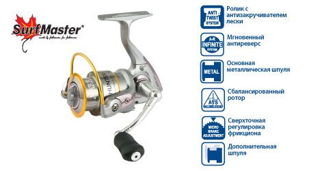 Характеристики катушки безынерционной Surf Master Hunter 3000, 8 ш.п. + 1 р.: