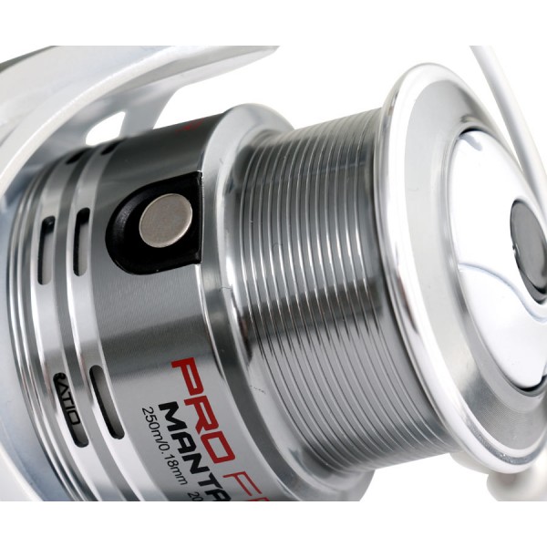 Мощная передаточная пара гарантирует значительный ресурс механизма и великолепные тяговые характеристики. Увеличенный ролик лесоукладывателя имеет специальную конфигурацию, которая препятствует перекручиванию лески при подмотке. Катушка поставляется с двумя алюминиевыми шпулями.