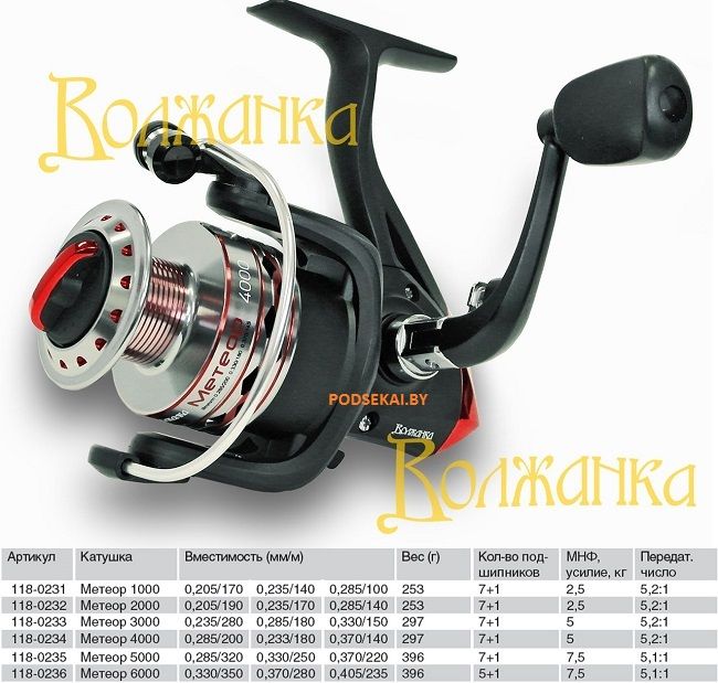 Характеристики катушки безынерционной ВОЛЖАНКА Метеор 2000 п/ф, 8 ш. п. + 1 р.: