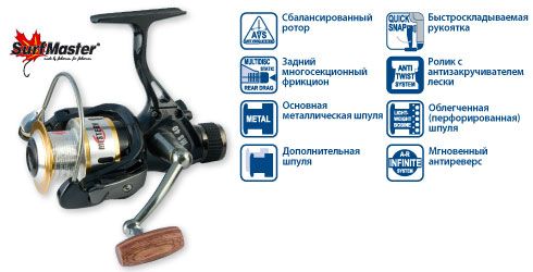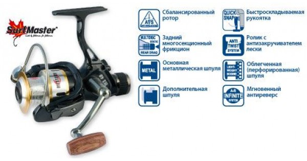 - Размер и шпуля: подбираются в зависимости от вида рыбы и условий и способа ловли