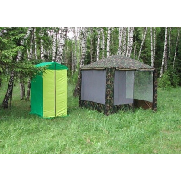 Туалет походный МИТЕК - тент изготовлен из тентовой ткани Oxford 240D PU 2000 (водостойкость 2000 мм водяного столба), устойчивой к воздействию солнечных лучей. В задней части тента имеется вентиляционный клапан закрытый антимоскитной сеткой.
