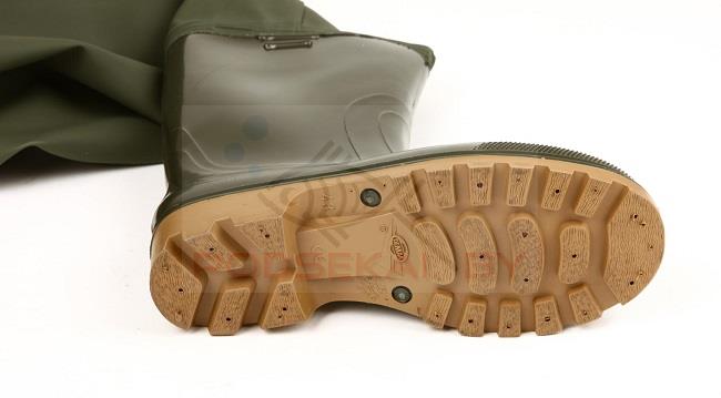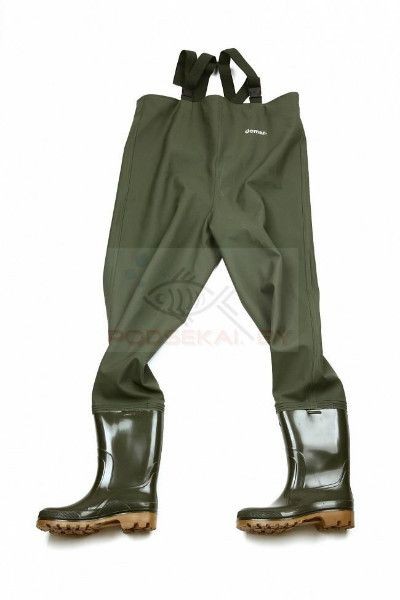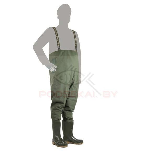 Забродники полукомбинезон DEMAR Grand Chest Waders - рыболовный комбинезон на регулируемых лямках произведён из поливинилхлорида, синтетического материала, отличающегося особой прочностью и износостойкостью. ПВХ водонепроницаем и сохраняет свои эксплуатационные качества на протяжении многих лет. Костюм состоит из полукомбинезона и резиновых сапог. Для большего тепла и комфорта полукомбинезон посажен на подкладку из синтетического джерси. Сапоги на рифлёной нескользящей подошве со съёмной стелькой из нетканого материала также имеют тонкую подкладку из синтетического джерси.