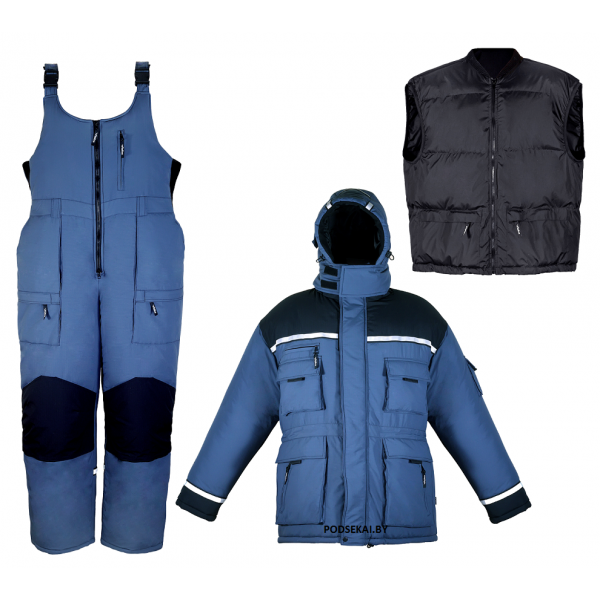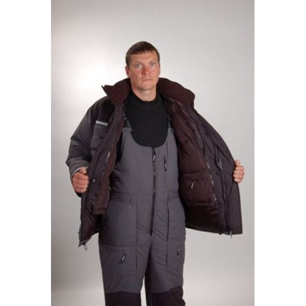 Костюм зимний ЭВЕРЕСТ (Чайка) - для рыбалки и активного отдыха, не шуршит. На куртке два внутренних и девять внешних объемных карманов, теплый съемный капюшон, воротник-стойка, внутренний трикотажный манжет, двухзамковая молния прикрыта ветрозащитной планкой. Отделка Polar Fleece. Жилет-подстежка с трикотажным воротником имеет два кармана на молнии. Может использоваться как самостоятельный элемент одежды.