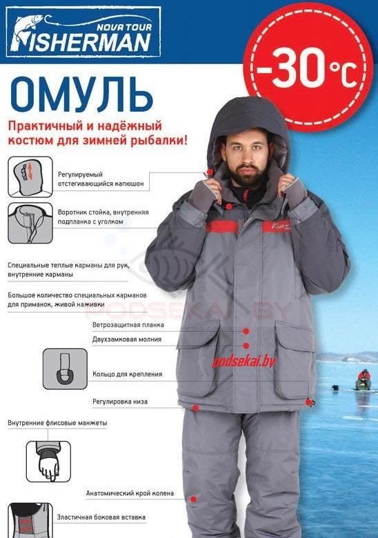 Костюм зимний NOVA TOUR (Нова Тур) Fisherman Скат - это отличный недорогой, тёплый, практичный и надёжный костюм, состоящий из куртки и полукомбинезона. Костюм NOVA TOUR (Нова Тур) Fisherman Омуль выполнен из плотных износоустойчивых материалов, дополнительно усиленных водоотталкивающей пропиткой, и имеет достаточно высокий уровень паропроницаемости, что позволяет владельцу не «вариться заживо» во время активного поиска заветного трофея. Отлично подходит для зимней ловли и ловли с лодки в межсезонье и активного отдыха в холодное время года.