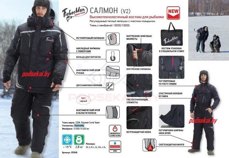 Костюм NOVA TOUR (Нова Тур) Fisherman Салмон V2 был проверен в водо-моторных соревнованиях поздней осенью, командой по зимней блесне и конечно-же сотнями любителей зимнего спиннинга в Беларуси и России. Большие нагрудные карманы вместят коробки с приманками, высокий воротник и анатомический капюшон защитят в любой ветер, а мембранная ткань и высокотехнологичный утеплитель защитят от осадков и согреют от холода!