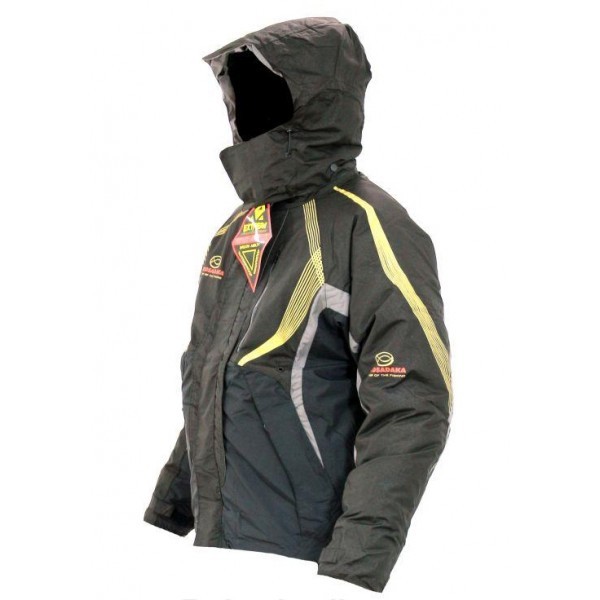 Минимальная температура -32С, оптимальная -25С. Куртка Kosadaka выполнен из не продуваемой, дышащей влагоотталкивающей ткани. Наружный материал 100% Polyamide; утеплитель и подкладка 100% Polyester. Куртка (1300г) с тёплым съёмным капюшоном, регулирующимся по объёму. Куртка-подстёжка крепится молниями с двух сторон основной куртки, а рукава фиксируются специальными петлями на манжетах. Все три внешних и один внутренний карманы оснащены надёжными молниями YKK. Манжеты стягиваются внешними патами на липучках. Длинные внутренние манжеты с эластичным с фиксатором и липучками, не позволяют снегу набиваться в рукава. Дополнительная снегозащитная юбка.