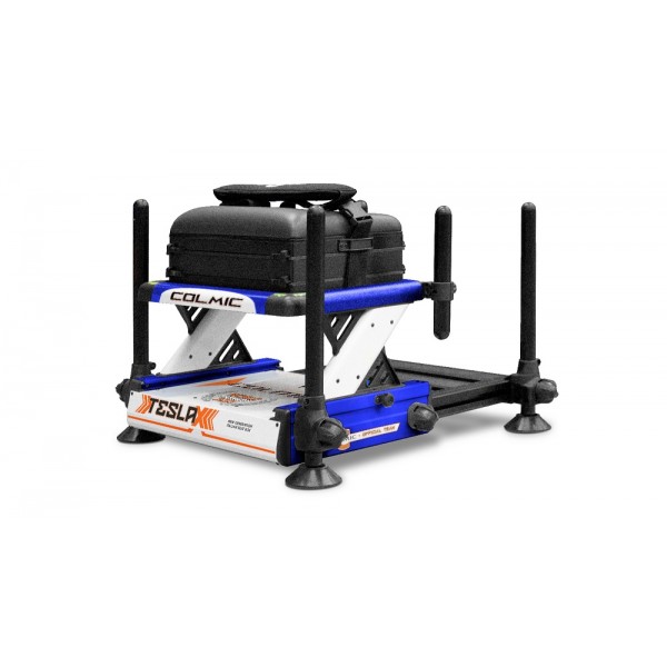 Платформа COLMIC TESLA X D36 - в новой рыболовной платформе Colmic Tesla каждую из четырех ножек диаметром 36 мм можно быстро установить на место поворотом одной ручки. Фактически, благодаря инновационной запатентованной крестовине Colmic (система сверхбыстрого регулирования) ножка диаметром 36 мм остается зафиксированной на конструкции сиденья, и перемещается только телескопическая внутренняя часть, с дополнительными преимуществами, которые мы перечислим.