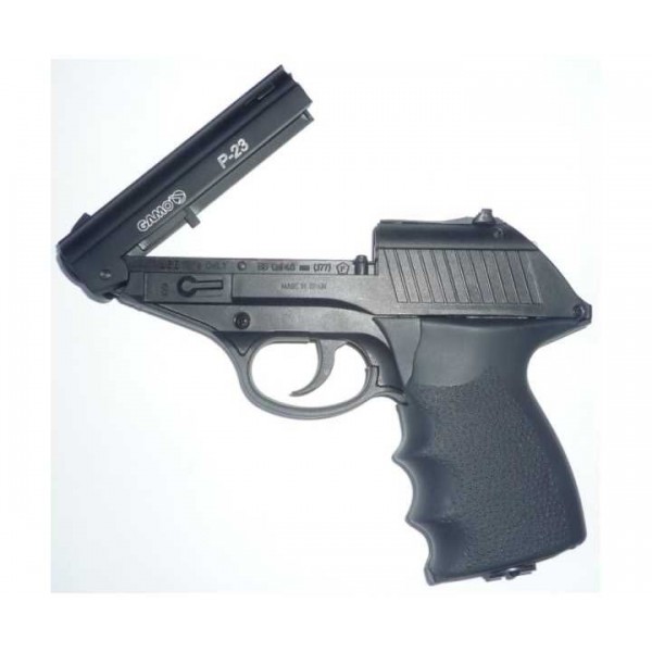Пневматический пистолет GAMO P-23 - это пневматическая модель испанского производителя Гамо. Сочетание достаточно высокой мощности выстрела с современным дизайном и удобной эргономикой, подходящей для скрытного ношения, вызвало успех и огнестрельного прототипа, и пневматической версии. Пневматическая модель Gamo P-23 весит 450 г, потому в обращении очень лёгкая и удобная.