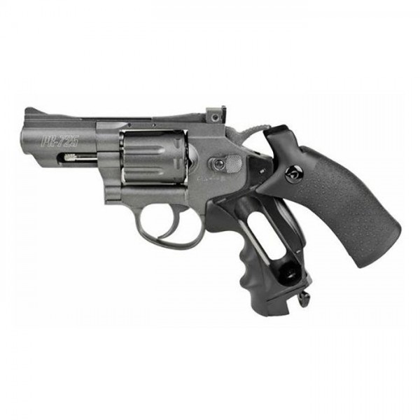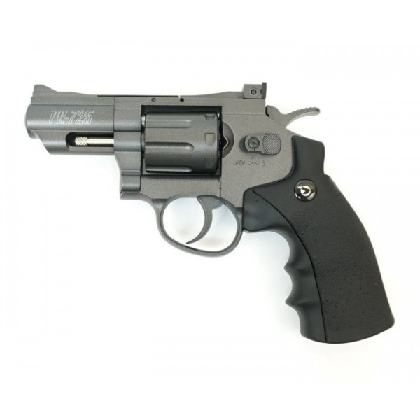 Пневматический пистолет GAMO PR-725 - это короткоствольный пулевой 8-зарядный газобаллонный пневматический револьвер производства испанской компании Gamo, отличается цельнометаллическим корпусом (пластиковые только накладки на рукоять). Пневматический револьвер Gamo PR-725 – это изделие из серии цельнометаллических модификаций от популярного бренда, созданное на базе знаменитого Smith & Wesson.Револьвер отличается укороченной длиной ствола и компактностью. Барабан, откидывающийся влево, вмещает 8 пневматических пуль калибра 4,5 мм. УСМ Gamo PR-725 двойного действия, стрельба ведется в полуавтоматическом режиме. Показатель начальной скорости выстрела – 100 м/с. Энергия выстрела обеспечивается 12-граммовым баллончиком с CO2. Уровень мощности данной модификации – в пределах 3 Дж, поэтому она доступна для покупки всеми желающими.