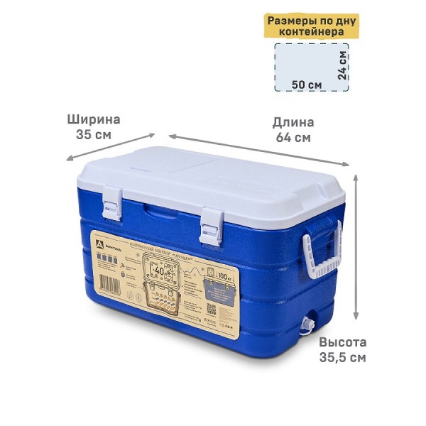 Крышка с замками защитит от случайного открытия, внутри термоконтейнер легко мыть после использования. Контейнер оборудован прочными ручками с двух сторон, крепкими замками, фиксирующим ремнем, который удерживает крышку в открытом состоянии. Встроенный слив решит проблему избытка конденсата.