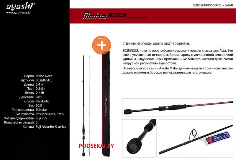 Характеристики спиннинга Ayashi Maho Next 802MNSUL 2,4м. 0,8-8 гр.: