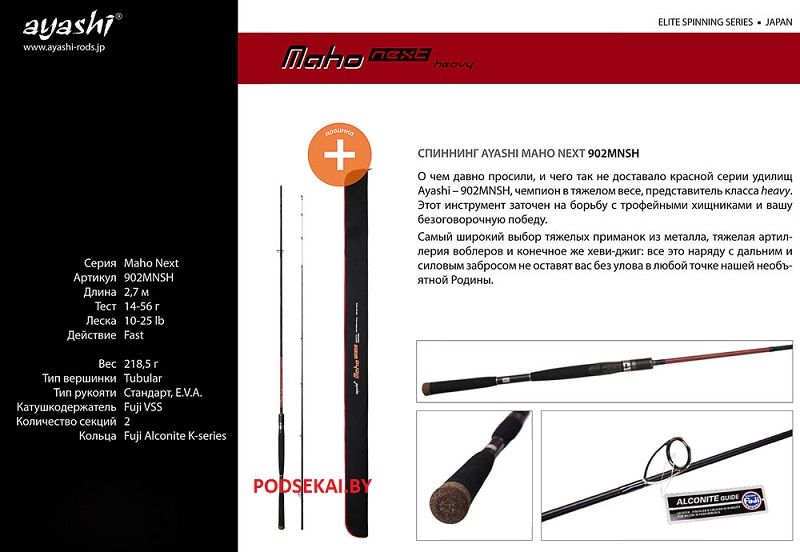 Спиннинг AYASHI Maho Next 902МNSH 2,7м. 14-56 гр. - о чем давно просили, и чего так не доставало красной серии удилищ Ayashi – 902МNSH, чемпион в тяжелом весе, представитель класса heavy. Этот инструмент заточен на борьбу с трофейными хищниками и вашу безоговорочную победу. Самый широкий выбор тяжелых приманок из металла, тяжелая артиллерия воблеров и, конечно же, хеви-джиг: все это наряду с дальним и силовым забросом не оставят вас без улова в любой точке нашей необъятной Родины.