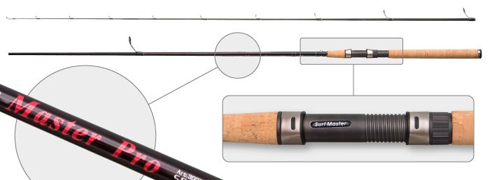 Спиннинг SURF MASTER Master Pro 3,0м. 10-30 гр. - обладает бланком особой чувствительности, что позволяет более точно определять движение рыбы. Удилище обладает среднебыстрым строем и имеет большее количество пропускных колец по сравнению с предыдущими моделями. Облегченная фурнитура и полуторная ручка делают процесс рыбалки более удобным. Спиннинг выполнен из качественного карбона IM8.