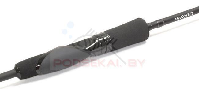 Катушкодержатель от той же фирмы Fuji имеет эргономичную форму, покрыт мягким материалом EVA высокого качества. Он хорошо отводит влагу от пальцев и ладони, обладает малой теплопроводностью. Что станет особо полезным при ловле в холодное время года. Верхняя зажимная гайка держателя скрыта в форгрипе. Размер которого позволяет осуществлять ловлю, держа указательный палец на бланке. Рукоять спиннинга Daiwa Generation Black Shad Caster имеет разнесенную конструкцию, что незначительно снижает вес изделия.