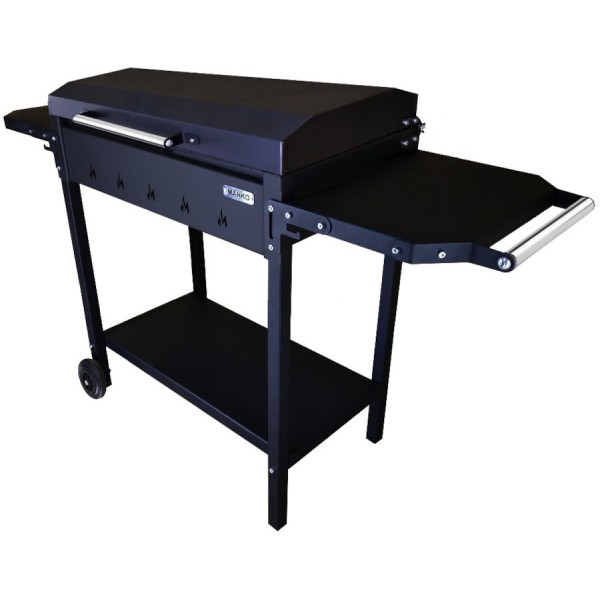 Гриль - мангал МАНКО Классик-6 - гриль-мангал "Классик-6" от компании MANKO предназначен для приготовления пищи под открытым небом. Выполнен из стали толщиной 2 мм. Покрыт термостойкой краской, выдерживает 700 градусов по цельсию. Практичный и удобный. Имеется две боковых и одна нижняя полка для продуктов и дров. А так же, колесо для удобного перемещения и крышка барбекю.