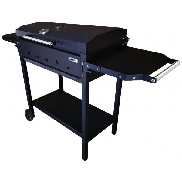 Гриль-мангал МАНКО Классик-7 - гриль-мангал "Классик-7" от компании MANKO предназначен для приготовления пищи под открытым небом. Выполнен из стали толщиной 2 мм. Покрыт термостойкой краской, выдерживает 700 градусов по цельсию. Практичный и удобный. Имеется две боковых и одна нижняя полка для продуктов и дров. А так же, колесо для удобного перемещения и крышка барбекю. Помимо всего, в крышке предусмотрен термометр и заслонка регулировки притока воздуха. В основании топки устроен выдвижной зольник. Максимальная комплектация.
