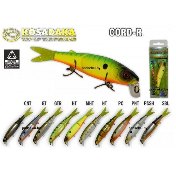Тело плавающего воблера Kosadaka Cord-R XS - прогонистое, характерное для типичного минноу. Конструктивной особенностью этой модели является то, что она изготовлена в виде двойного составника (части тела приманки шарнирно соединены специальными петлями). Это обуславливает особенности игры Kosadaka Cord-R XS, движения которого в воде удачно имитируют поведение серьёзно раненного, беззащитного малька. Наличие яркого силиконового хвостика обеспечивает дополнительную анимацию приманки в воде, чрезвычайно соблазнительную для хищных обитателей глубин. Рыбаку стоит поместить данную модель в обособленное отделение в коробочке со снастями, поскольку силикон хвоста в сильную жару может плавиться и подпортить другие приманки.