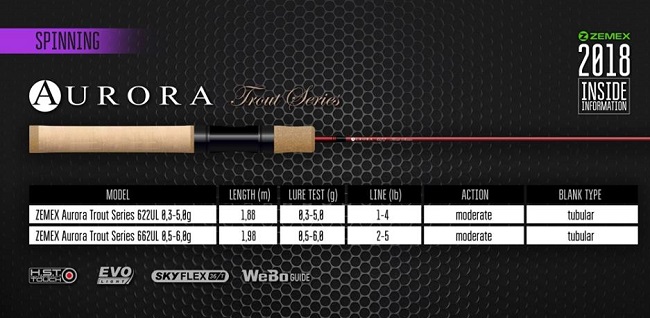 Характеристики спиннинга ZEMEX Aurora Trout 622UL 1.88м. 0.3-5 гр: