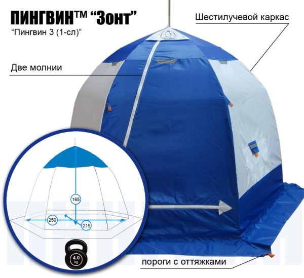 Характеристики палатки зимней зонт Пингвин 3 Люкс дыщащая: