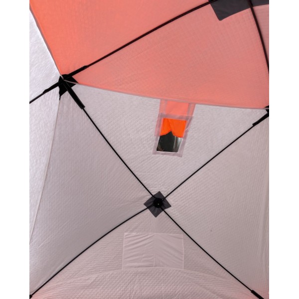 Новая трехслойная ткань "ТЕРМОЛАЙТ" позволяет комфортно рыбачить в любую непогоду.. Теперь в ней могут свободно разместиться два человека и комфортно рыбачить как днем, так и ночью! Так же вход снабжен специальной зимней молнией, которая снаружи имеет защитную планку, предотвращающую от замерзания. Палатка выполнена в светлых тонах и имеет яркую крышу и пороги, а так же светоотражающие элементы по периметру, что позволяет увидеть палатку в ночное время. На наружной юбке имеются оттяжки для крепления порогов при отсутствии снега. Внутренне пространство тоже стало намного удобнее.