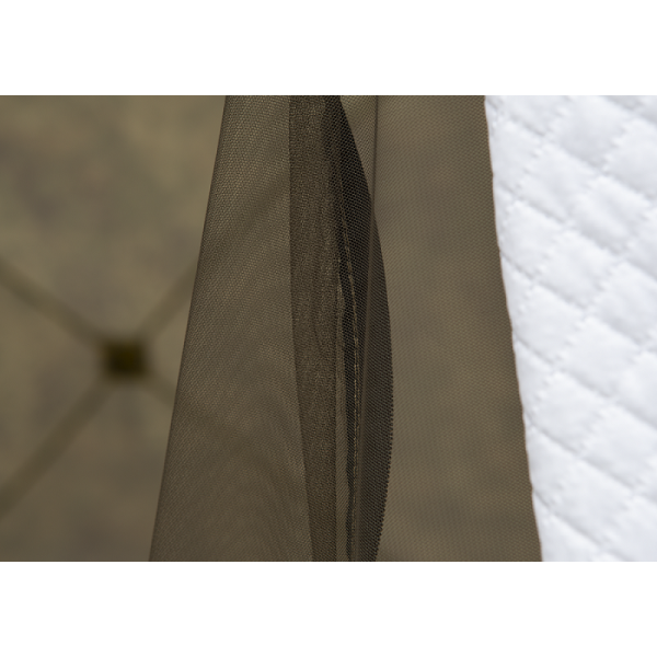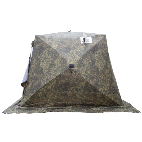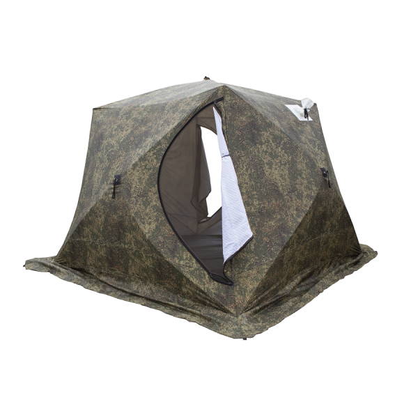 Устойчива к истиранию и механическим воздействиям. Тент палатки выполнен из ткани, которая позволяет пропускать дневной свет во внутрь палатки, благодаря чему рыболов имеет возможность ловить рыбу в дневное время без подсветки дополнительными осветительными приборами. Вентиляционное окно закрывается на молнию. Снаружи расположена сплошная ветрозащатная юбка.