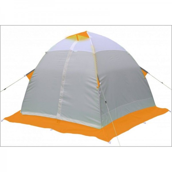 Тент палатки, изготовленный из современных высокотехнологичных тканей с водонепроницаемым покрытием, обеспечивает надежную защиту от атмосферных осадков, сильного ветра и мороза. Тент палатки крепится к дугам каркаса при помощи специальных рукавов, вшитых с подгибом в несущие швы. Тент крепится по всей длине дуг каркаса, создавая с ним единую цельную конструкцию, что положительно сказывается на прочности и устойчивости палатки.