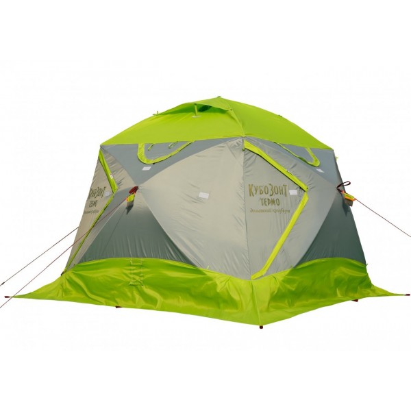 Палатка зимняя ЛОТОС КубоЗонт 4 Компакт Термо - обновленная палатка (модель 2022) доступна к продаже с октября 2021 года. В модернизированной версии установлены боковые каркасы новой усиленной конструкции, доработаны элементы тента и компрессионная сумка. Палатка представлена в серо-салатовом цветовом исполнении.