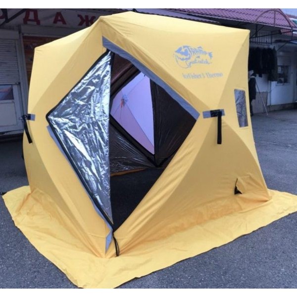 Палатка зимняя TRAMP Ice Fisher 3 Thermo - новая модель от компании Tramp? идеальная палатка для зимней рыбалки на льду, устанавливается за 45 секунд. Две двери, четыре обзорных окна, которые можно использовать как вентиляцию. Два вентиляционных отверстия. Два кармана для мелочей внутри. Широкая юбка по периметру. Усиленные молнии. Ледовые ввертыши в комплекте.Светоотражающие элементы на каждой стороне и гранях.