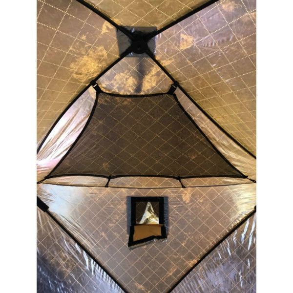 - Металлизированное напыление внутренней ткани палатки дает эффект теплового зеркала, отражая тепло и не давая выходить ему наружу.